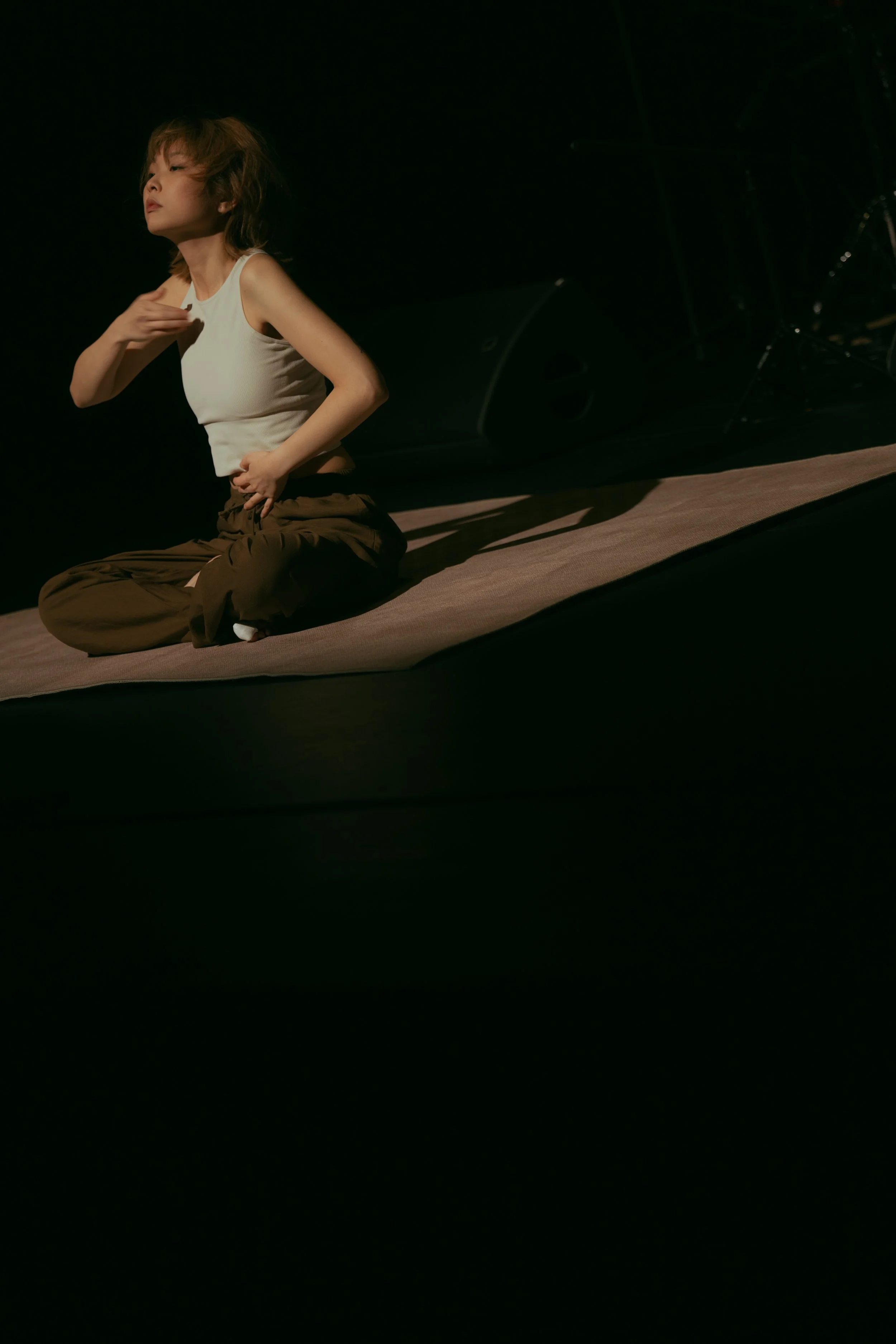 余林橞(Karen Yu)是一位居於香港的敲擊樂手、聲音藝術家及策展人,其創作關注聲音實作、觀眾參與與跨領域合作之間的交匯。自古典敲擊訓練出發,她的實踐以聲音物件與身體動作的即興為核心,探問聲音如何在協作的情境中,把人與空間編織在一起。在其最新的個人獨奏會《Three Movements for Percussionist》中,她重新想像敲擊樂實踐的可能性,從聲音、空間到表演中的身體,同時亦讓身體從作為「樂器」的角色轉化為一座「活的檔案庫」,承載並呈現勞動、脆弱性、風險與易碎性,使其得以被累積並變得可被閱讀。現時她為現在音樂藝術總監、敲擊室樂組合 The Up:Strike Project 共同創辦人,以及香港創樂團聯席樂手。